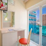 Servigroup Calypso de Benidorm offre des chambres avec un balcon comprenant un chauffage central, ainsi qu'une TV à écran plat avec des chaînes satellite. Elles viennent avec une toilette séparée et une douche. Les chambres offrent des vues sur la ville.